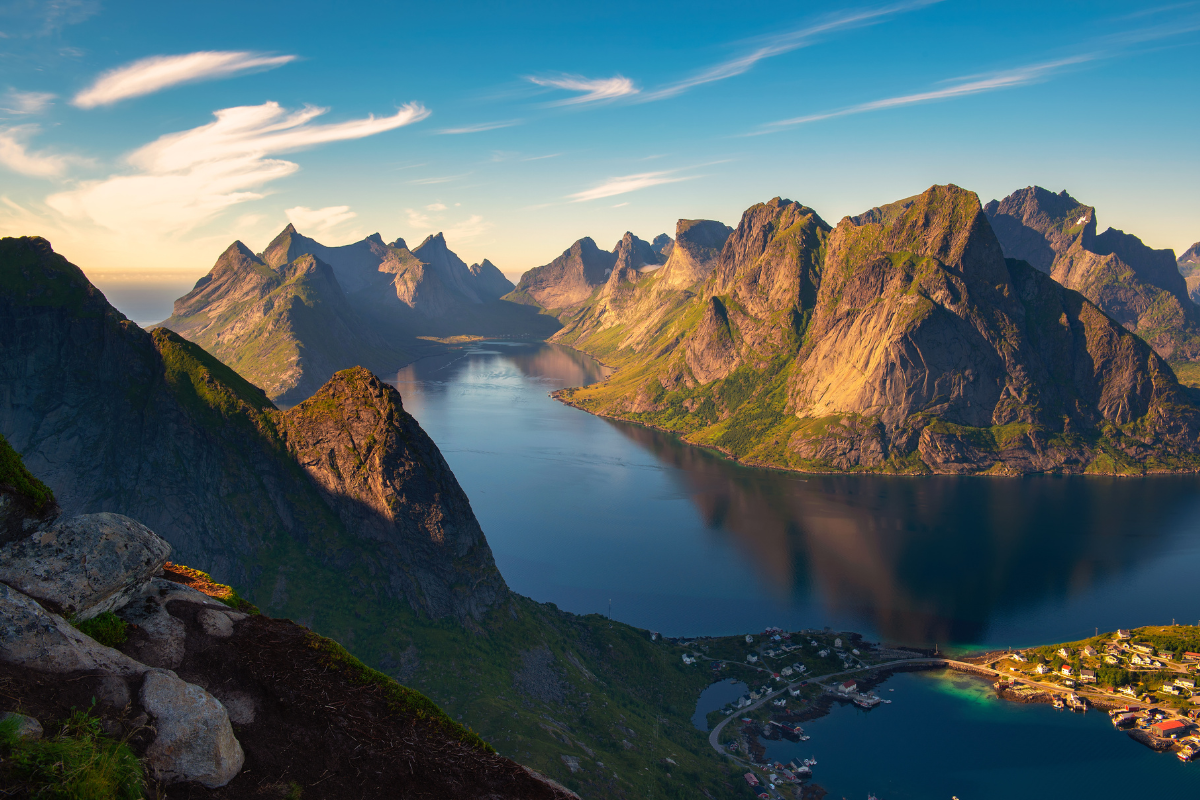 These islands are located in the Northern Atlantic Ocean, slightly off the coast of Norway. As you move on the roads of Lofoten, you’ll pass sandy beaches, breathtaking mountains, quaint, and several small fishing hamlets.
